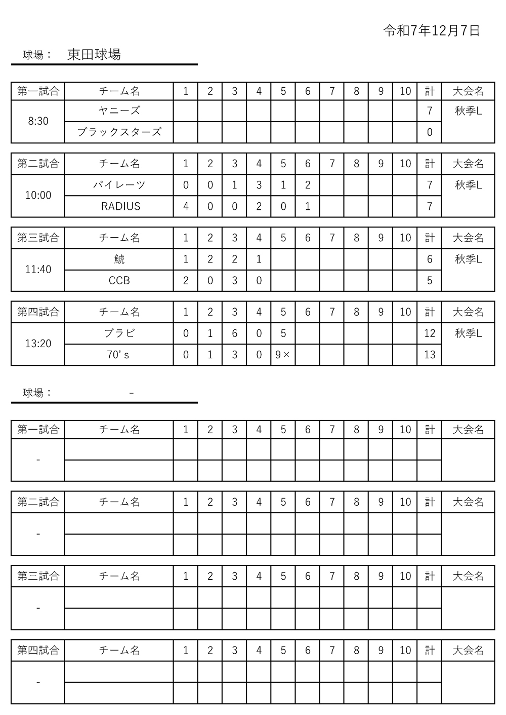 2025年12月7日の試合結果です。