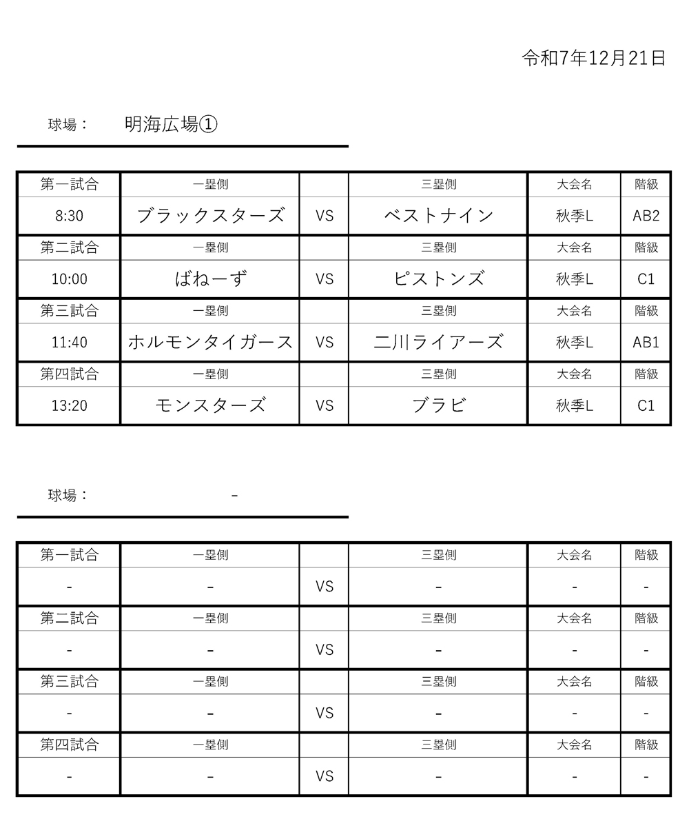 2025年12月21日の試合は、雨天のため中止となりました。