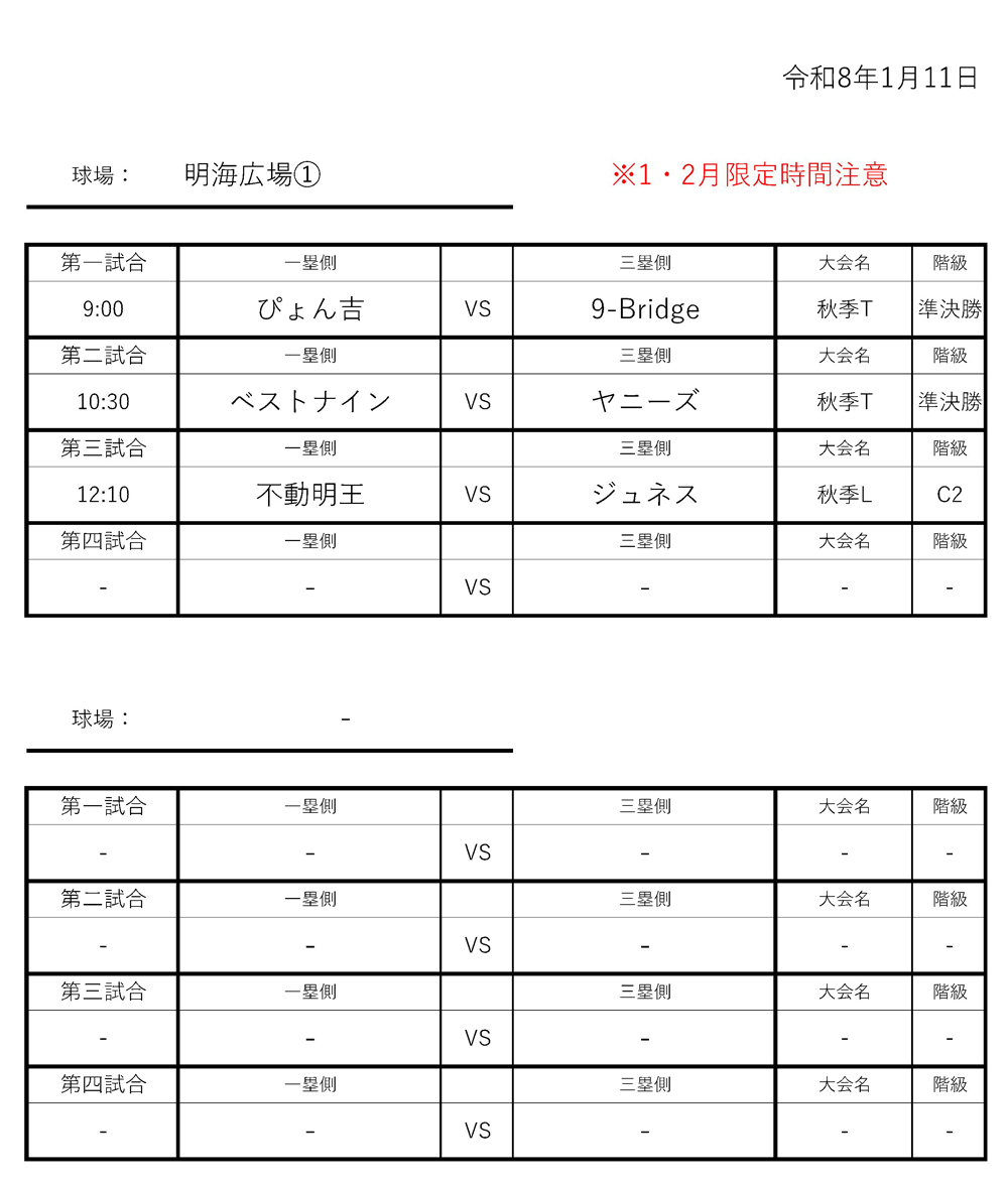 1月・2月は試合開始時間が30分変更となりますので、ご注意ください。