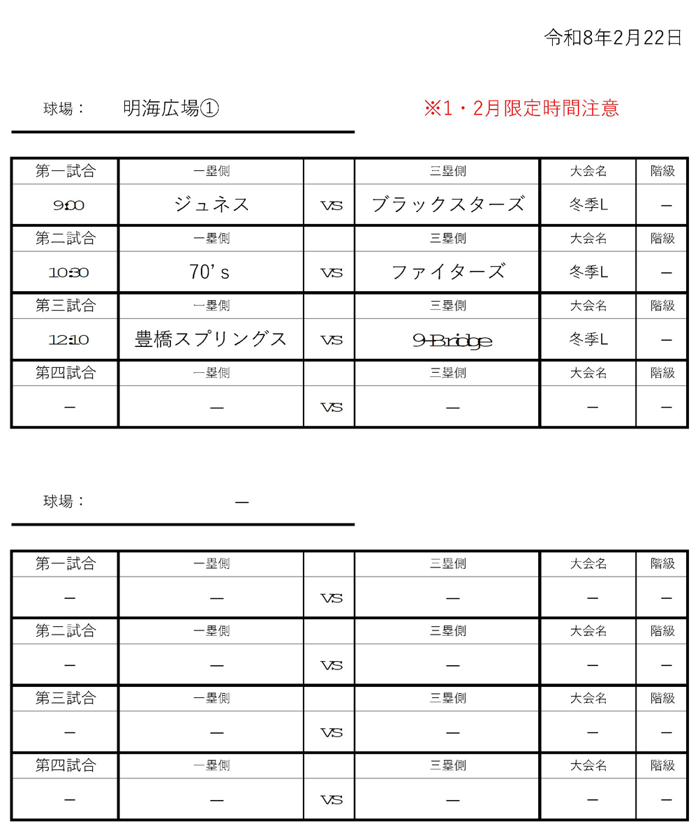 1月・2月は試合開始時間が30分変更となりますので、ご注意ください。